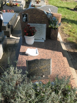 Sur sa tombe, une plaque épitaphe "De foire en foire / de verre en verre / de boire en boire / Je mords encore / à pleines dents / Je suis un mort / encore vivant", dernier couplet de La Chanson De Van Horst de Jacques Brel.