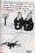 Conservateur et cocardier, fasciné par De Gaulle qu’il dessina souvent, il sut aussi imposer ses personnages : une jeune Marianne en tenue légères courtisant la classe politique, ses chats ou encore ses "Vieilles dames" indignes aux jambes filiformes...