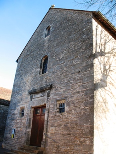 Lors de ma visite, la petite église était fermée. Sur la paroi de l’église apparaît son buste.