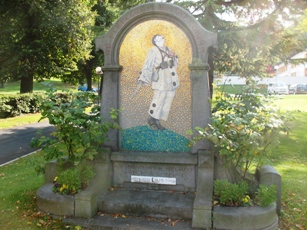 A l’entrée, un saisissant monument aux morts commémorant les artistes morts aux combats : il figure un Pierrot habillé en poilu et terrassé par une balle. Derrière figure une liste des victimes.