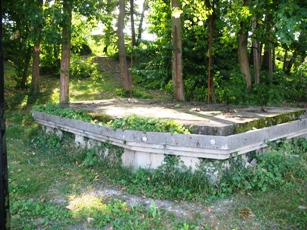 Derrière le château, une route monte vers un espace ruiné qui avait été aménagé pour être une scène de spectacle à ciel ouvert. En montant sur le côteau très boisé, un escalier permet d’aboutir sur un terre-plein : des bancs disposés en hemicycle donne sur la tombe de Dranem et de son épouse. Clairement, une mise en scène de cette tombe avait été conçue par son auteur, mais l’endroit est bucolique et propice à la rêverie (petit ruisseau, grotte en rocaille...).
