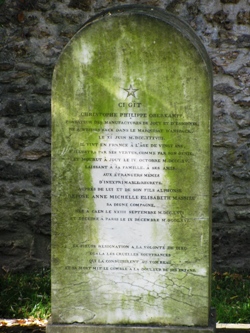 M. Oberkampf est inhumé dans la parc du Montcel à Jouy-en-Josas. La tombe près de son ancienne maison est un cénotaphe comme me l’avait confirmé les services de la mairie de Jouy.