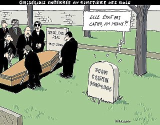 « Ecrivain, peintre, prostituée ». La plaque commémorative en acier sera bientôt fixée sur la tombe de Grisélidis Réal, dont l’ensevelissement au panthéon genevois (le cimetière des Rois, à Plainpalais) a eu lieu hier après-midi. Née à Lausanne en 1929, décédée en 2005 d’un cancer, Grisélidis Réal repose juste derrière les tombes de Jorge Luis Borges et de François Simon. Et à quinze mètres de celle de Jean Calvin !