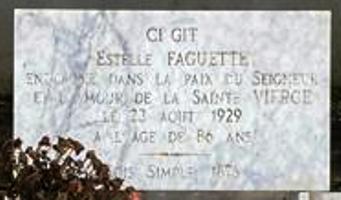 On y trouve également la sépulture d’Estelle FAGUETTE (1843-1929), qui déclara avoir vu la Vierge lors des apparitions mariales de Pellevoisin en 1876. Souhaitant consacrer sa vie à Dieu, elle était entrée chez les sœurs augustines de Notre-Dame de Paris, mais une chute entraîna un handicap physique important l’obligeant à renoncer à son projet. Elle trouva un poste comme domestique chez la comtesse de La Rochefoucauld et fit venir ses parents qu’elle soutint financièrement. En 1875, elle fut atteinte d’une péritonite qui dégénéra, et fut considérée comme « perdue » par ses médecins. Sur le point de mourir, elle guérit subitement et totalement, et déclara avoir eu des visions de la Vierge. Au total c’est une quinzaine d’apparitions dont elle déclara avoir été favorisée sur cette année 1876. Elle demanda à l’Église, et obtint la création du scapulaire du Sacré-Cœur, ainsi que d’une confrérie de fidèles. Une fois guérie, elle reprit son service de domestique et poursuivit sa vie dans la discrétion. Sa béatification est en cours. Georges Bernanos voulut se faire inhumer dans ce cimetière en raison de sa présence.