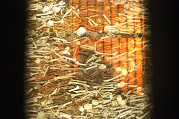 La salle du fond laisse paraitre à travers un grillage un ossuaire, unique cimetière souterrain de ce genre au Portugal.