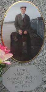de la Kriegsmarine, il reçut en août 1944 l’ordre de faire sauter les installations portuaires et les quais de la ville de Bordeaux. Il fit à l’inverse sauter seul le blockhaus contenant les charges explosives. Il rejoignit ensuite la résistance française. Naturalisé sous le nom de Henri Salmide en 1947, il épousa une Française et repose dans la ville qu’il sauva de la destruction.
