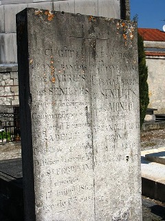 Ici reposent les restes mortels deJeanne ConteEpouse Guestier FrancoisDécédée a bordeauxDans sa maisonRue du cerf volant n° 14Où le malheur des tempsOblige son mariDe l’inhumer dans la cave de la dite maisonCe n’est qu’en 1869Pres de cent ans aprèsLes jours de la persecution pendant lesquels la tombeElle-meme n’offrait pas asileAux protestants persécutésDans leur foi religieuseQu’il a ete possibleA un de ses petits-filsApres avoir _____________restesDe les placer enfinDans le champ du reposFrancois GuestierDecede en 1789Après la promulgationDe l’edit de louis xviA pu etre publiquement portéDans sa propriete de BèglesOu d’apres les dispositions de son testamentIl a ete inhumé