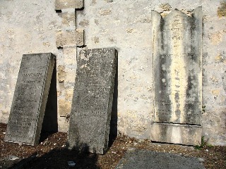 – Une pierre tombale, posée contre le mur du cimetière, témoigne des vicissitudes que connurent les dépouilles des protestants avant l’Edit de tolérance de 1787. L’épitaphe indique effectivement :