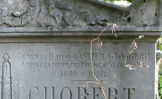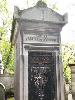 La plupart des sites se trompent en indiquant sa présence dans la chapelle en bordure de division qui porte effectivement le nom de d’Astier de la Vigerie, mais qui renferment la dépouille de son oncle, Emmanuel Raoul d’Astier de la Vigerie (1845-1911), et celles de sa descendance.