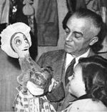 c’est davantage en tant que marionnettiste qu’il se fit connaître dans le Monde, sculptant lui-même ses marionnettes. Cherchant à réunir les traditions de l’art de la marionnette et à lui redonner son rang parmi les spectacles, il avait créé dès 1903 un théâtre, les Bonshommes Tempo, écrit des pièces, monté des spectacles pour l’Exposition de 1937, et fondé l’Association des compagnons de la marionnette. Avec lui repose son épouse, la soprano Marcelle GERAR (Marcelle Regereau : 1891-1970), qui fut une amie et interprète de Maurice Ravel.