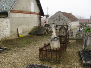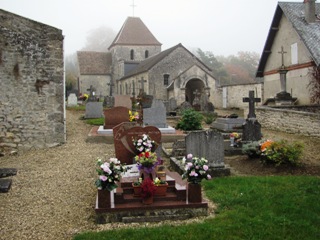 Autour de son église, le minuscule petit cimetière d’Arrancy a heureusement conservé une partie de ses monuments anciens. L’endroit, nimbé par le brume de novembre, est charmant.