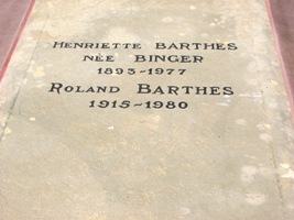 C’est auprès de sa mère que repose effectivement Roland BARTHES (1915-1980). Grand sémiologue français, il participa à un renouvellement de la critique littéraire et artistique. Formé en linguistique et en lexicologie à Paris, l’étudiant se passionna également pour le théâtre, la littérature et la musique. Inspiré par le mouvement structuraliste et par ses lectures de Freud, de Marx ou encore de Lévi-Strauss, l’écrivain s’imposa avec Le Degré zéro de l’écriture, un essai fondateur sur la littérature dite "neutre", et l’étude des "signes". Une grande partie des recherches de Barthes se concentra autour de la notion de mythe, ancien ou moderne, développée dans le célèbre ouvrage Mythologies. Proche du philosophe Michel Foucault, il entra avec lui au conseil de rédaction de la revue Critique. Directeur d’études à l’EHESS puis enseignant au Collège de France, Roland Barthes a profondément marqué l’université française et l’enseignement des lettres à partir des années 1970 : ses cours ont d’ailleurs fait l’objet de publications multiples.