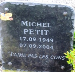 Bref, au milieu de cet océan de bondieuseries et de platitudes que rien ne peut excuser, ni le manque de moyen financier, ni la gêne et la peine engendrées par le deuil (on a tous connu ça je pense), il arrive parfois qu’au détour d’une allée, entre deux chapelles, on soit frappé au cœur par une tombe, le plus souvent humble, qui détonne de la logorrhée funéraire habituelle : quelques photos ou dessins, une phrase gravée (ou même écrite au stylo parfois), un message simple…, un petit quelque chose qui fait que cette tombe devient unique, qu’elle prend sa véritable dimension mémorielle. Cet article à pour but de vous présenter quelques-unes d’entre-elles, véritable nectar pour le promeneur de cimetières. Certaines suscitent l’émotion, d’autres plongent le lecteur dans la rêverie. Toutes ont un point commun, chacune à leur manière : elles nous parlent vraiment de celui, celle, ou ceux qui reposent sous la dalle. Pendant un infime instant, elle ressuscite un défunt que nous ne connaissons pourtant pas. Elles offrent une très brève mais très intense intrusion dans un quotidien que l’on a pas connu, que l’on ne connaîtra jamais, mais que l’on se plait à imaginer, par transfert, par empathie parfois… C’est aussi à cela que servent les cimetières, faut-il le rappeler ?