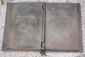 Sa tombe est un banc sur lequel une plaque en bronze proclame son épitaphe : L’action et la pensée à la gloire de la musique et de la vie...