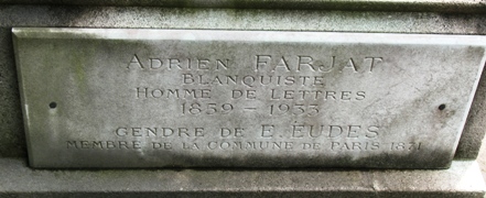 Dans la même concession repose son gendre, Adrien FARJAT (1859-1933). Cet ouvrier tisseur lyonnais fut un militant blanquiste actif.