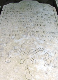 – Dans un coin du cimetière, récemment nettoyées et désormais immaculées, se trouvent trois croix annonçant le tombeau de famille des TRAVANET. ici reposent deux frères qui rachetèrent l’abbaye de Royaumont et en firent une manufacture et une filature de coton : Jean Joseph Guy Henri de Bourguet, marquis de TRAVANET, qui fut dénoncé et incarcéré à la prison Saint-Lazare avec son frère, en 1793. Libéré en 1794, il décéda en vendémiaire an IV, et Pierre Nicolas Joseph BOURGUET de TRAVANET (1753-1812), qui fut de 1802 à 1810 député du tarn.