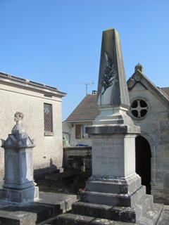 Devant la chapelle, d’autres membres de la famille Derolland sont inhumés sous une stèle ornée d’un buste.