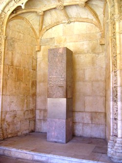 A proximité se trouve la tombe du grand écrivain contemporain Fernando PESSOA (1888-1935). Sous diverses identités, et dans plusieurs langues (anglais, portugais et français), ce poète eut la particularité d’être à peine connu de son vivant, laissant son œuvre dans une malle d’où, a priori, ne sont pas encore sortis tous les manuscrits. Inhumé au cimetière des Prazeres de Lisbonne (le grand cimetière de la ville), ses restes furent transférés ici en 1985 pour le cinquantenaire de sa mort. Sa tombe se présente sous la forme d’un bloc de granit abrité sous une arcade gothique.