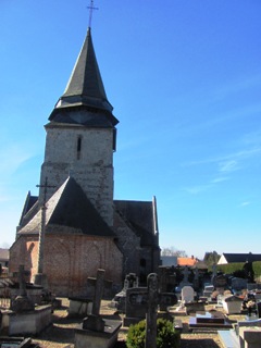 Contre les flancs de l’église ont été conservés quelques tombeaux des familles seigneuriales d’Omonville.