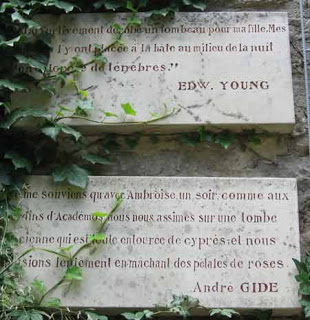 "Je me souviens qu’avec Ambroise [1]un soir, comme au jardins d’Academos, nous nous assîmes sur une tombe ancienne qui est toute entourée de cyprès et nous causions lentement en mâchant des pétales de roses" André Gide