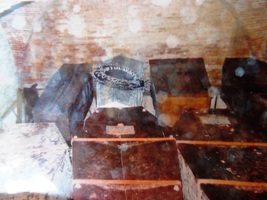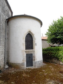L’entrée de la crypte est visible à l’extérieur, la porte d’accès étant évidemment fermée.