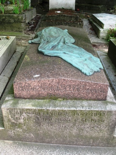Sa tombe, proche de celle de Nerval qui éclipse sa présence, se signale par une composition en bronze par Suzanne Bizard.