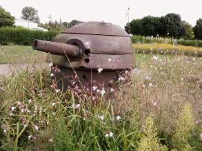 les trois impacts d’obus qui le tuèrent dans ce qui est devenu un square commémoratif. A l’époque, les Allemands avaient pris le temps de l’enterrer près de la tourelle et lui avaient rendu les honneurs militaire ,étonnés qu’un seul homme leur ait infligé tant de pertes (une centaine de morts et blessés et également la mise hors d’état de trois chars).