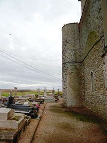 C’est un paysage beau et sauvage. Le petit cimetière est blotti contre l’église.