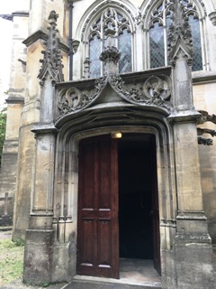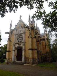 Disons le tout d’abord : les Britanniques, qui sont pourtant encore plus fascinés par Napoléon Ier que les Français, n’ont que faire du neveu. Il faut toute la ténacité taphophilique pour découvrir cette abbaye : si vous l’imaginez dans une lande brumeuse et mystérieuse, détrompez-vous ! Dans un cadre périurbain quelconque, elle n’est même pas indiqué par un panneau ! On pénètre par une porte donnant sur une allée forestière en pente. Au sommet de la butte se dresse les bâtiments monastiques, et un peu au delà la chapelle elle-même.