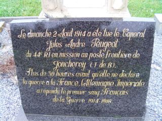 Il était instituteur et avait été mobilisé sous l’uniforme du 44e RI, régiment dans lequel il effectuait son service militaire. Ramené à Etupes, son enterrement eut lieu dans la tombe familiale deux jours plus tard. Une stèle du Souvenir Français, explique en quelques lignes son histoire. Le lieutenant Mayer, quant à lui, repose dans le cimetière d’Illfurt, en Alsace.