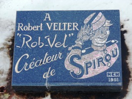La "star" du lieu, section 24, est méconnue de tous, hormis des fans de BD qui ne peuvent ignorer son nom : il s’agit de ROB-VEL (Robert Velter : 1909-1991). Sa création ? Rien moins, en 1938, que le personnage de Spirou [1], gamin espiègle et débrouillard, roux comme un écureuil, qu’on aurait pu croire né d’une