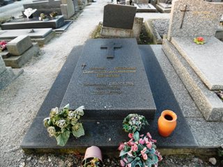 cervelle belge [2] ! Il est à noter que son épouse, Blanche Dumoulin (+1975) qui fut la première scénariste de la série, ne semble pas reposer avec lui (sans doute s’était-il remarié). Sa tombe est discrète (il faut guetter la sépulture Le Men-Branchu), tout comme l’est la très jolie plaque "vintage" qui célèbre son illustre création.