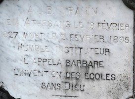 Signalons également cette étonnante plaque d’un instituteur qui "appela barbare l’invention des écoles sans Dieu" !