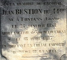 – Le monument à la mémoire du caporal Jean Bestion (+1883), « mort victime de son dévouement le 18 avril 1883 en arrêtant un cheval emporté au milieu de la ville »
