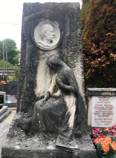 Il existe à Montbéliard une dynastie de sculpteurs, les Bloch, dont le plus fameux fut Armand (1866-1932), ancien élève des sculpteurs Alexandre Falguière et Antonin Mercié, qui exposa aux Salons dont il était sociétaire et qui réalisa en particulier le Monument au chevalier de la Barre érigé en 1906 sur le parvis de la basilique du Sacré-Cœur de Montmartre à Paris, qui fut envoyé à la fonte durant la Seconde Guerre mondiale. Armand garda des liens étroits avec Montbéliard où il réalisa des ornements pour les tombeaux ainsi que des monuments aux morts. Deux tombes Bloch ouvragées se font face dans le cimetière : celle de Gustave Bloch (1868-1884), son frère, ornée d’une Jeunesse, dont on trouve une copie en marbre à Montparnasse, réalisée par Armand, et celle de leur père, Maurice (dates illisibles : né en 182 ?), qui créa l’atelier familial en 1857, orné d’une pleureuse et d’un médaillon. Armand avait deux frères sculpteurs, Léon et Julien : Bertrand Beyern indique la présence de Léon (1864-1936) sans qu’aucune inscription sur aucune des tombes corrobore la présence. J’ignore même où fut inhumé Armand, qui mourut à Montbéliard et qui en toute logique devrait reposer ici.