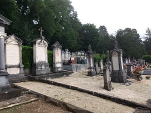 – la partie basse (rouge), la plus ancienne, contient les plus intéressants monuments, dont un grand nombre d’enclos familiaux protestants Elle longe la ligne de chemin de fer.