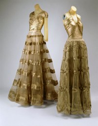 colliers, en guirlandes, toujours somptueusement parsemées sur des capes ou des cols. Elle avait l’habitude de travailler sur un petit mannequin de bois peint sur lequel elle créait toutes ses toiles en modèles réduits.