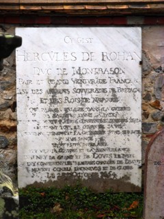– Le premier est celui des branches contemporaines de la famille de Rohan, ceux décédés avant 1793 étant dans la chapelle des princes accessible uniquement par l’église. On y trouve en particulier la pierre tombale d’Hercule de ROHAN-