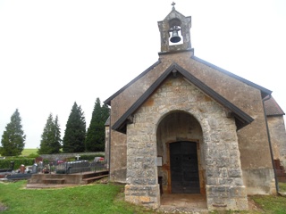 En plein milieu des champs, abrité sous des sapins, le petit cimetière de Rougemont à une allure charmante.