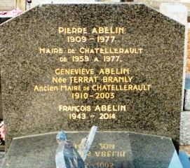le Mouvement républicain populaire (MRP) à sa création, et se montra un partisan de la Troisième Force, opposé au RPF du Général de Gaulle. Député de la Vienne de 1945 à 1958 puis de 1962 à 1974, maire de Châtellerault de 1959 à 1977, il exerça à plusieurs reprises des fonctions ministérielles : Secrétaire d’État à la Présidence du Conseil chargé de la coordination des services du Commissariat au Plan, de l’Information et des relations avec le Parlement (1947-1948), Secrétaire d’État aux Finances durant trois mois en 1952, Secrétaire d’État aux affaires économiques (1955-1956), il fut ministre de la Coopération de 1974 à 1976. Avec lui repose son épouse, Geneviève Terrat-Branly (1910-2003), petite-fille d’Édouard Branly, inventeur de la TSF. A la mort de son mari qui venait d’entamer son quatrième mandat municipal, elle fut élue maire de Châtellerault (1977-1983). Ils furent les parents de l’actuel maire de la commune, Jean-Pierre Abelin.