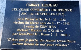 la JOC (Jeunesse Ouvrière Chrétienne), il partit en 1943 pour le STO. Affecté dans une usine de charbon près de Leipzig, il organisa des réunions clandestines avec d’autres chrétiens. En décembre 1943, les autorités allemandes menaçant de punir les activités religieuses, il fut arrêté par la Gestapo et déporté au centre de travaux forcés de Zöschen où il mourut d’épuisement. Son corps fut rapatrié ici et il fut déclaré Martyr du XX° siècle par Jean-Paul II en 2000. Son procès en béatification est ouvert.