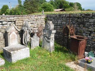 Au fond du cimetière, des stèles anciennes constituent un improbable musée lapidaire.