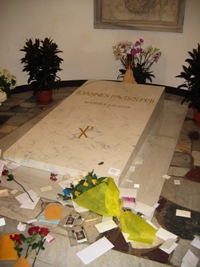 A noter que l’emplacement où repose Jean-Paul II avait été préalablement occupé par Jean XXIII et par Pie X avant que ces deux derniers en soient béatifié (Jean XXIII) ou canonisé (Pie X) et transférés dans la basilique Saint Pierre.
