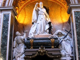 Inhumé dans les grottes vaticanes de Saint-Pierre, il possède un tombeau avec priant dans la basilique et un autre avec gisant dans les grottes vaticanes.