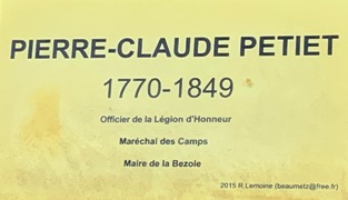 – L’adjudant-général Pierre-Claude PÉTIET (1770-1849) qui fit partie de l’état-major du major général prince Berthier, avec qui il fit les campagnes d’Austerlitz, d’Iéna, d’Eylau et de Friedland. Chevalier et baron de l’Empire, la chute du régime l’empêcha de devenir général. Neveu de Claude-Louis Petiet, qui fut ministre de la Guerre (et qui repose au Panthéon), il fut le grand-père de la peintre Marie Petiet qui repose à Le Bezole (à noter que l’épouse de Pierre-Claude y repose aussi). Sa tombe étant quasiment illisible, l’un de ses descendants y a apposé une plaque d’identification.
