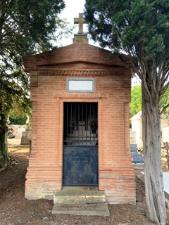 Au centre du cimetière, la chapelle imposante des curés de la commune.