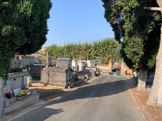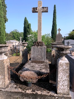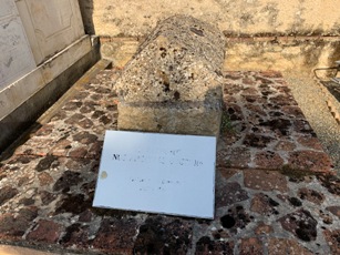Un sarcophage insolite : une plaque, passablement effacée par le soleil, indique qu’ici "reposent nos ancêtres d’Ictium - fouilles de la Gravette 1992-1994". Ictium était le nom du site ancien de l’Isle Jourdain. Il fut fouillé suite à la création de la RN 124 reliant Auch à Toulouse. Le gisement s’est révélé d’une richesse archéologique extraordinaire ; découverte d’une agglomération routière antique dont l’occupation perdura jusqu’au milieu du XIIème siècle.