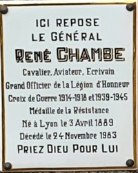Son arrière-petite-fille Suzanne épousa René CHAMBE (1889-1983) qui repose dans ce même enclos. Ce pionnier de l’aviation de chasse durant la guerre de 1914-1918 fut célèbre pour ses écrits sur l’aviation, notamment son Histoire de l’aviation (Flammarion, 1949). Dans les années 1930, il créa le Service Historique de l’Armée de l’Air puis devint Directeur des Etudes de l’École de l’Air. Ministre de l’information du Commandement en chef français civil et militaire de Giraud à Alger (février à mai 1943) il fut son chef de cabinet quand celui-ci devint co-président du CFLN (juin 1943 à mai 1944). Durant onze mois, il assista ainsi à Alger à l’aggravation de la mésentente entre le général de Gaulle et le général Giraud. Lorsque Giraud accepta de se retirer à Mostaganem, Chambe rejoignit alors le général Juin.