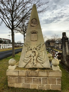 aux campagnes révolutionnaires (il combattit en Vendée) fit celles de l’Empire. Il gouverna les Îles ioniennes, prit part à la campagne d’Espagne et fut fait baron d’Empire. Sa mort, antérieure à la création du cimetière, laisse deviner un transfert bien postérieure de ses restes sous une pyramide très ornée.