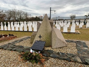 – sur un tertre, un imposant monument aux-morts et tombeau collectif de soldats.